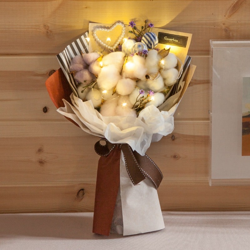 라그라스 조화 꽃다발 LED 목화 32cm 인테리어 꽃선물 장식 기념일