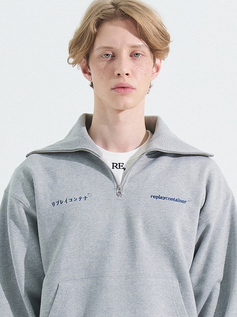 [리플레이 컨테이너] double logo long half zipup mtm (gray)