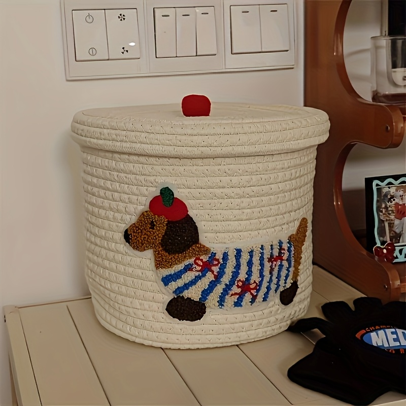 TEMU 1개 대용량 먼지방지 뚜껑 보관 바구니, 휴일 장식 정리함, 짠 로프 보관 상자, 홈용 다기능 뚜껑 아이템 박스, 선반 바구니