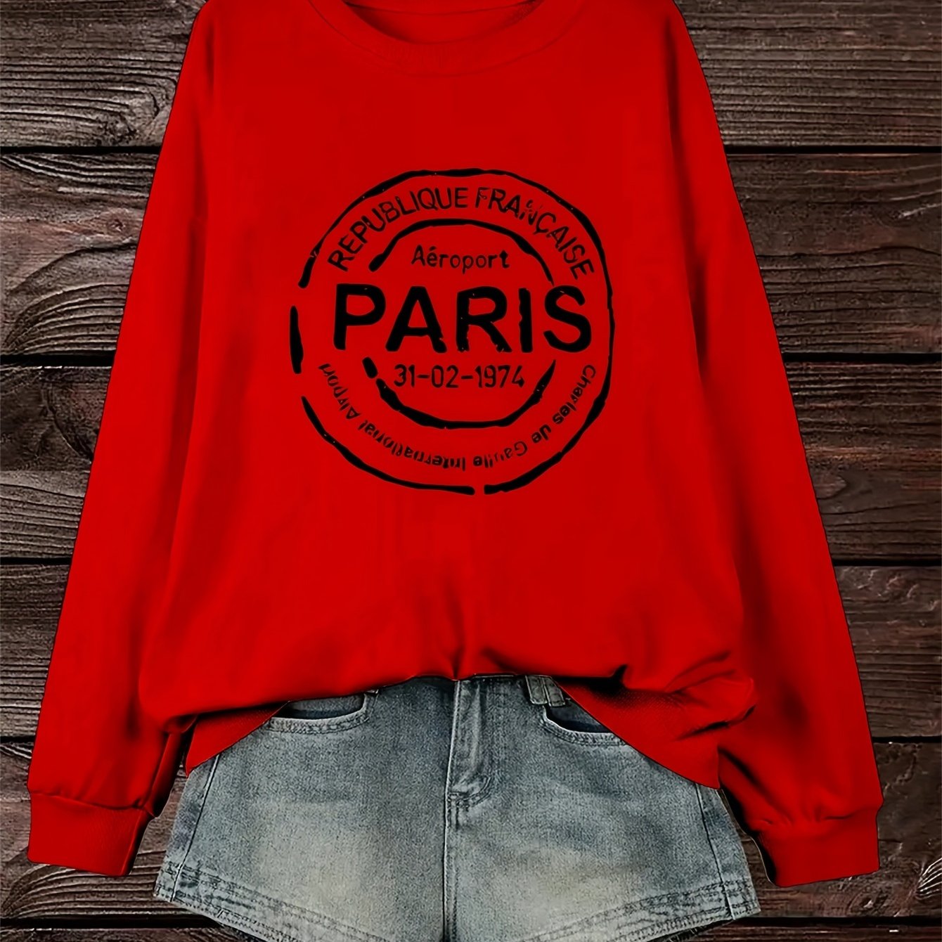 TEMU 가을과 겨울을 위한 캐주얼한 롱 슬리브 크루넥 스웨트셔츠, 여성 의류