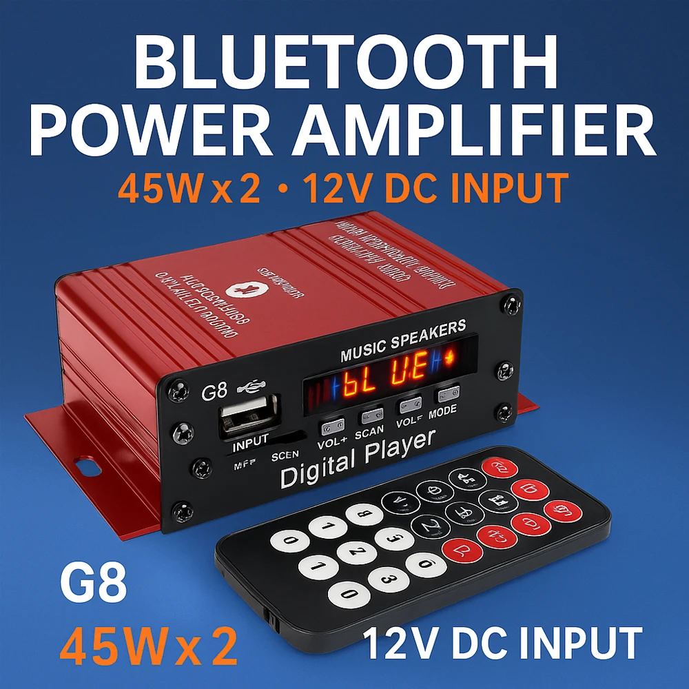 G8 블루투스 오디오 증폭기 12V/45Wx2 전원/USB/SD/AUX 입력/LED 디스플레이 자동차/가정용 미니 디지털 플레이어