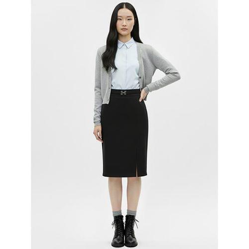 [샵앤]국산 여성 H벨트 앞트임 스판 정장 무릎 스커트 NS-WSK-20849-블랙