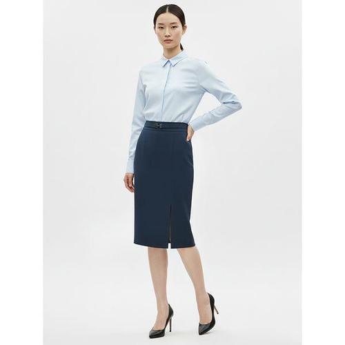 [샵앤]국산 여성 H벨트 앞트임 스판 정장 무릎 스커트 NS-WSK-20849-블루