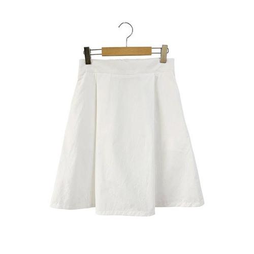 [샵앤]국산 여성 밴딩 A라인 코튼 무릎 스커트 STJ-WSK-4861-아이보리