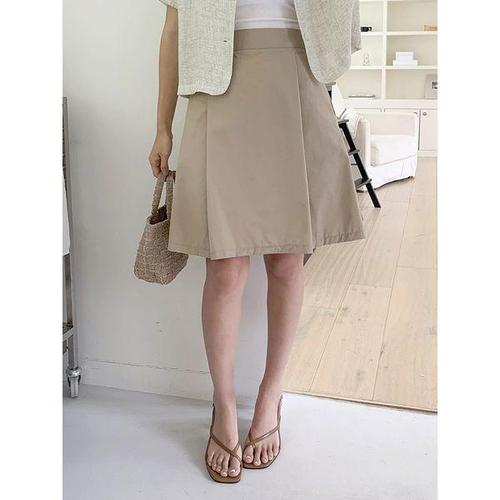 [샵앤]국산 여성 밴딩 A라인 코튼 무릎 스커트 STJ-WSK-4861-베이지