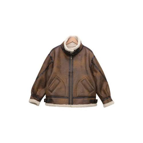 POMTOR 겨울 중년 남성 무스탕 스타일 가죽 자켓 기모 보온 두꺼운 아우터