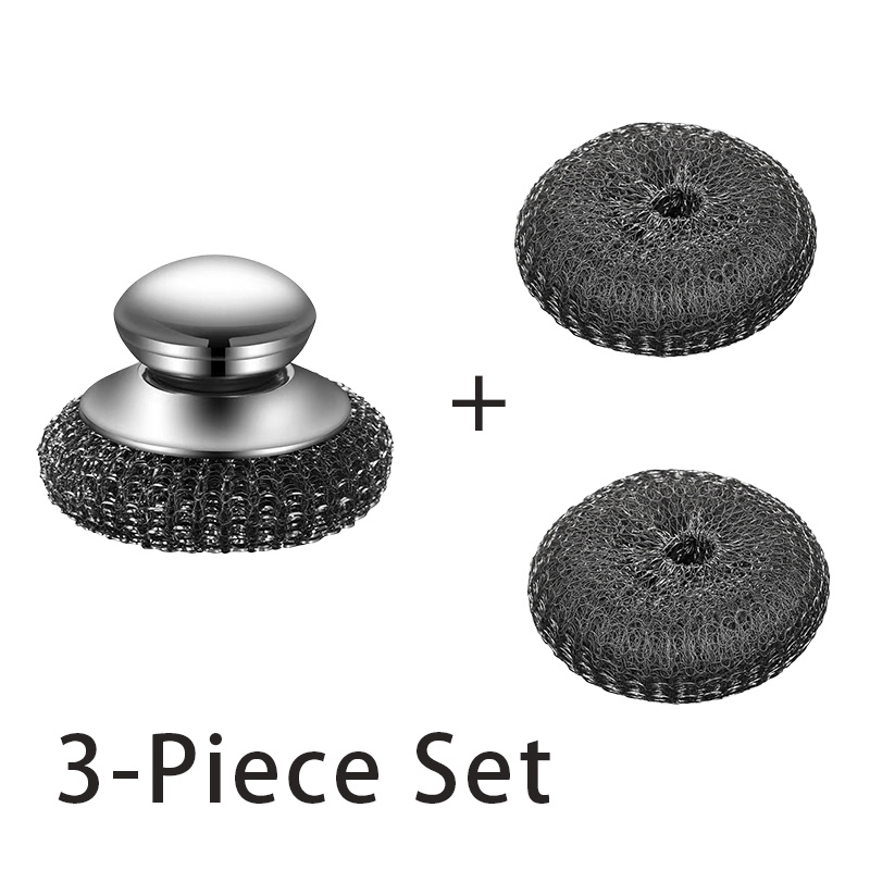 TEMU 3개 세트 헤비듀티 스테인리스 스틸 주방 & 욕실 청소 브러시 세트 (교체용 스틸 울 헤드 2개 포함) - 재사용 가능한 스크럽 브러시, 인체공학적 손잡이로 냄비, 팬, 식기, 샤워, 욕조 및 야외 사용에 적합 - 스크러버 도구