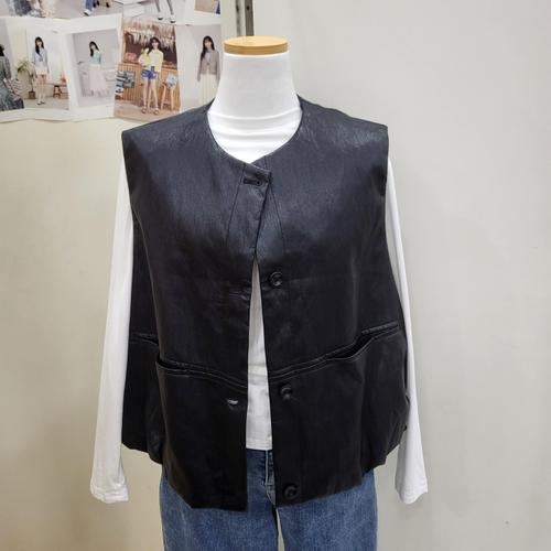 [무자크]라운드넥레더조끼(MQ2WVLJ11)