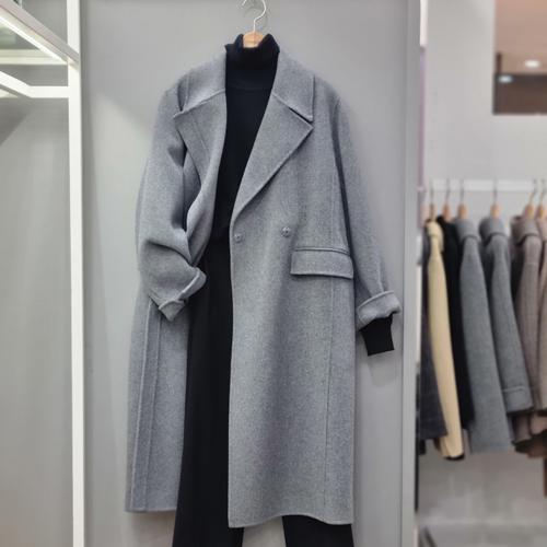 지블링 여성 캐시미어100 핸드메이드 벨티드 롱코트 겨울 하객룩 오피스룩