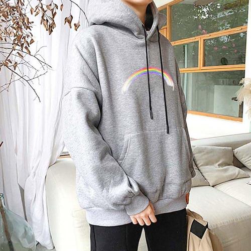 무지개 프린팅 포인트 기모 따뜻한 심플 남성 후드티 WAE0E4C
