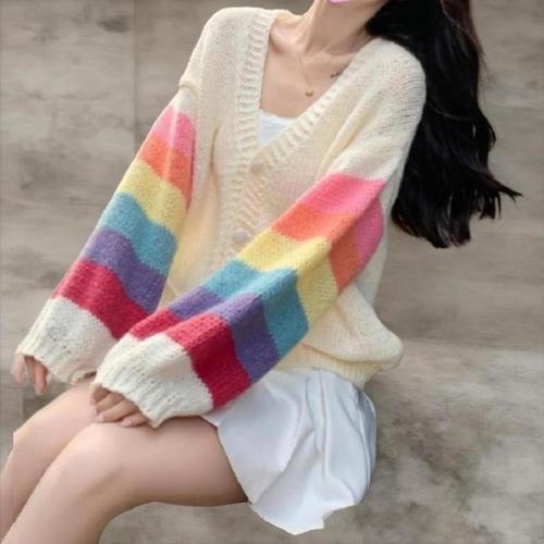 [옷자락] 여성 일상 여리핏 무지개 감성 니트 카디건