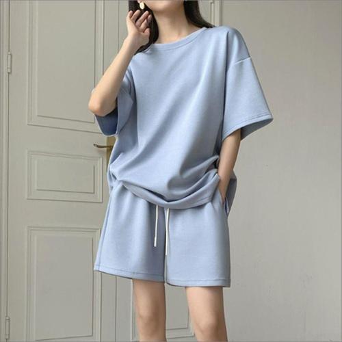 [에이치플러스몰]여성 여름 캐주얼 패션 무지 반팔 반바지 상하의 세트