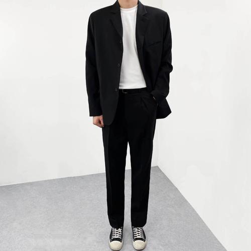 [엠클로]남자 여름 간절기 오버핏 쓰리버튼 무지 기본 박스자켓 벨트 슬랙스 팬츠 셋업수트 3컬러