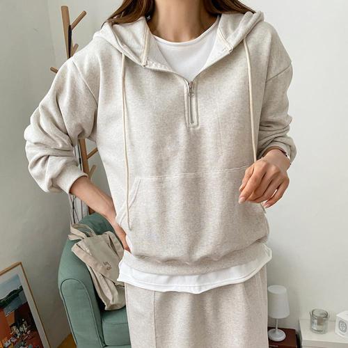 [옷자락]여자 반집업 기본 베이직 무지 후드티