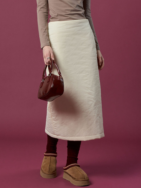 [KOLEAT]패딩 방한 보온 도톰 누빔 무지 롱스커트 [아이보리]