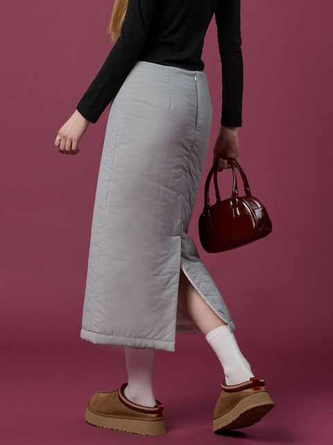 [KOLEAT]패딩 방한 보온 도톰 누빔 무지 롱스커트 [소라그레이]