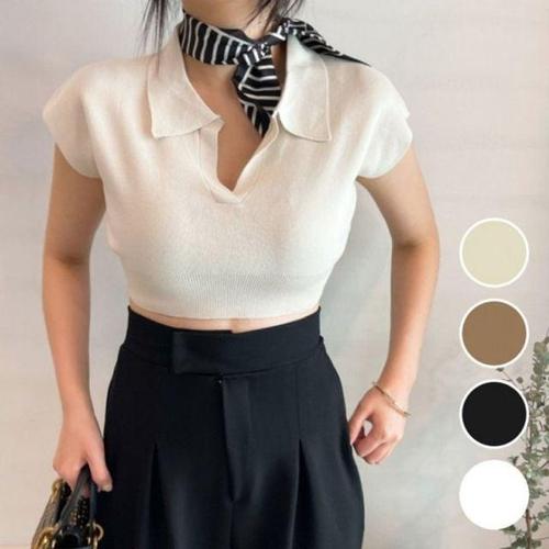 티셔츠 크롭 피케 크롭티 오피스 엘레나 무지 WD7D9B9