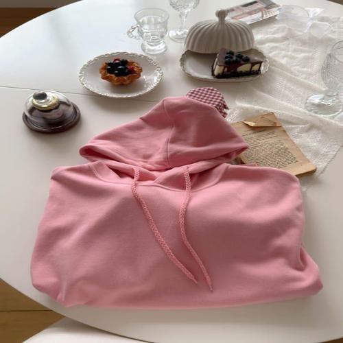 AnnLine 무지 오버핏 후드티 커플 티셔츠 가을 겨울 남자 여자