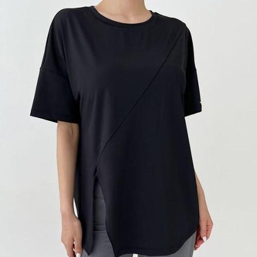 [옷자락]여자 무지컬러 스판 절개 반팔티 5부 레깅스 세트