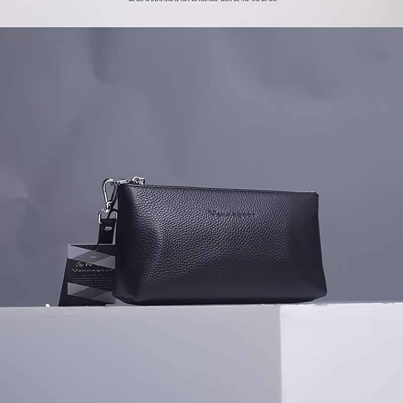 TEMU 남성용 진짜 가죽 클러치 | 소가죽 | 대용량 | 손목끈이 있는 부드러운 캐주얼 스타일 | 안전한 지퍼 클로저 | 일상 사용, 비즈니스 액세서리에 적합 | 세련된 블랙 가방 | 내구성 있는 가죽 퍼스