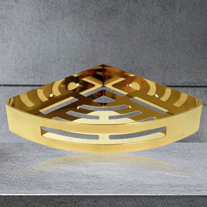 엄지척 HLBATH 스텐레스 부착식 욕실 무타공 코너선반 골드
