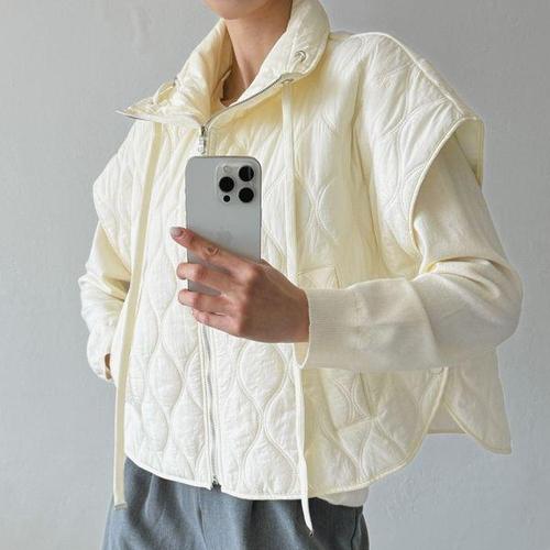 [옷자락] 여자 하이넥 언발 박시핏 크롭 물결 퀼팅 패딩 조끼