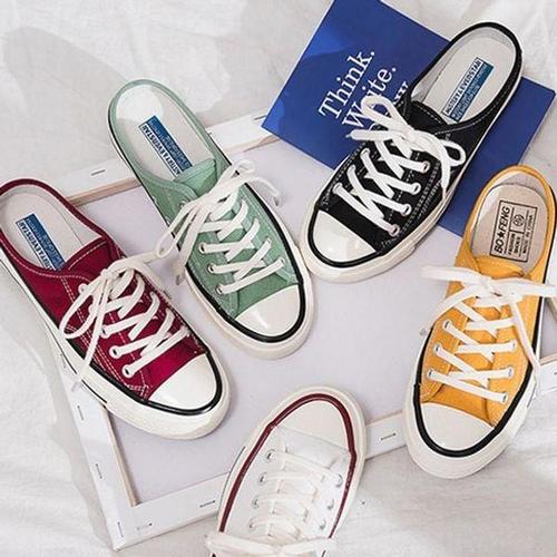 여성 데일리 오픈백 뮬 스니커즈 편안한 캔버스슬립온온 통굽 키높이 캐주얼 발편한 신발 슬리퍼 운동화