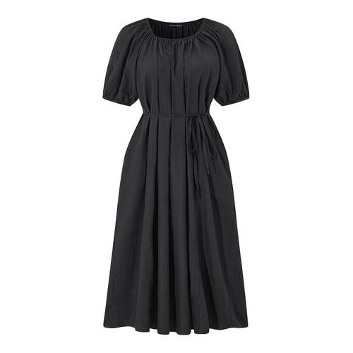 TEMU 솔리드 컬러 라운드넥 원피스, 우아한 핏 롱 슬리브 원피스, 봄/가을에 적합, 여성 의류