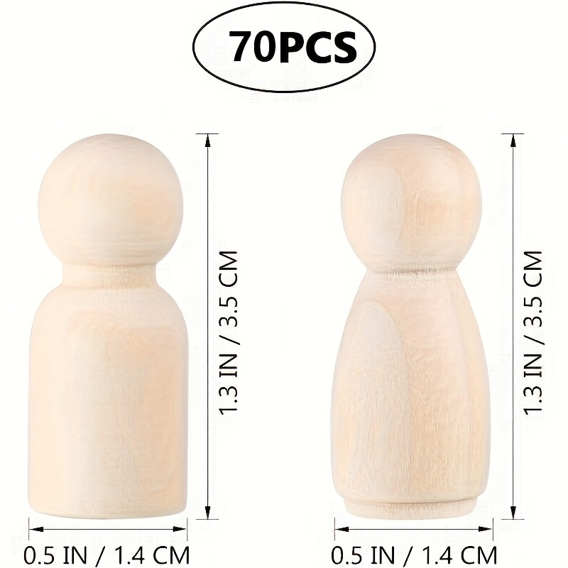 TEMU 70개 혼합 미완성 나무 피규어 세트 | 공예, 홈 데코, 페인팅 및 장식 디스플레이에 적합, 컬러