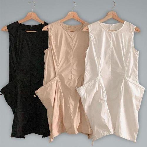 [신상오픈런]여성 투웨이 스트링 호박색 민소매 절개 포켓 미니 드레스
