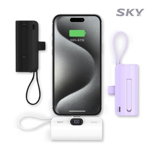 ★2개구성★ 스카이 필 X13 일체형 도킹형 듀얼 LED 미니 보조배터리 5000mAh C타입/8핀