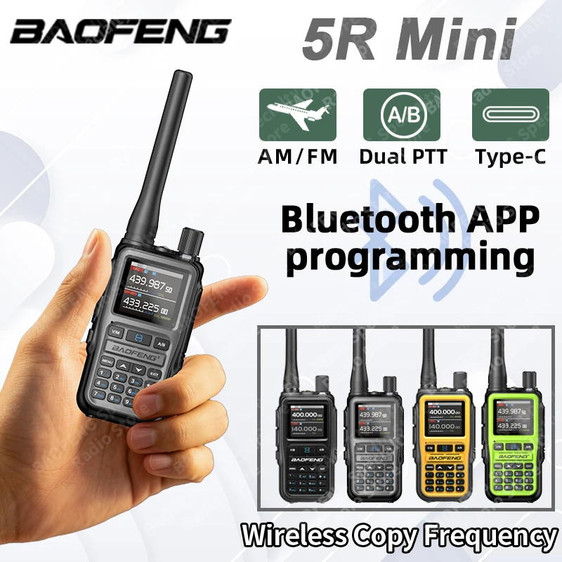 바오펑 UV-5R 미니 5W 무전기 멀티 밴드 블루투스 앱 NOAA 날씨 999채널 타입-C 충전식 양방향 무전기 (야외 사냥용)