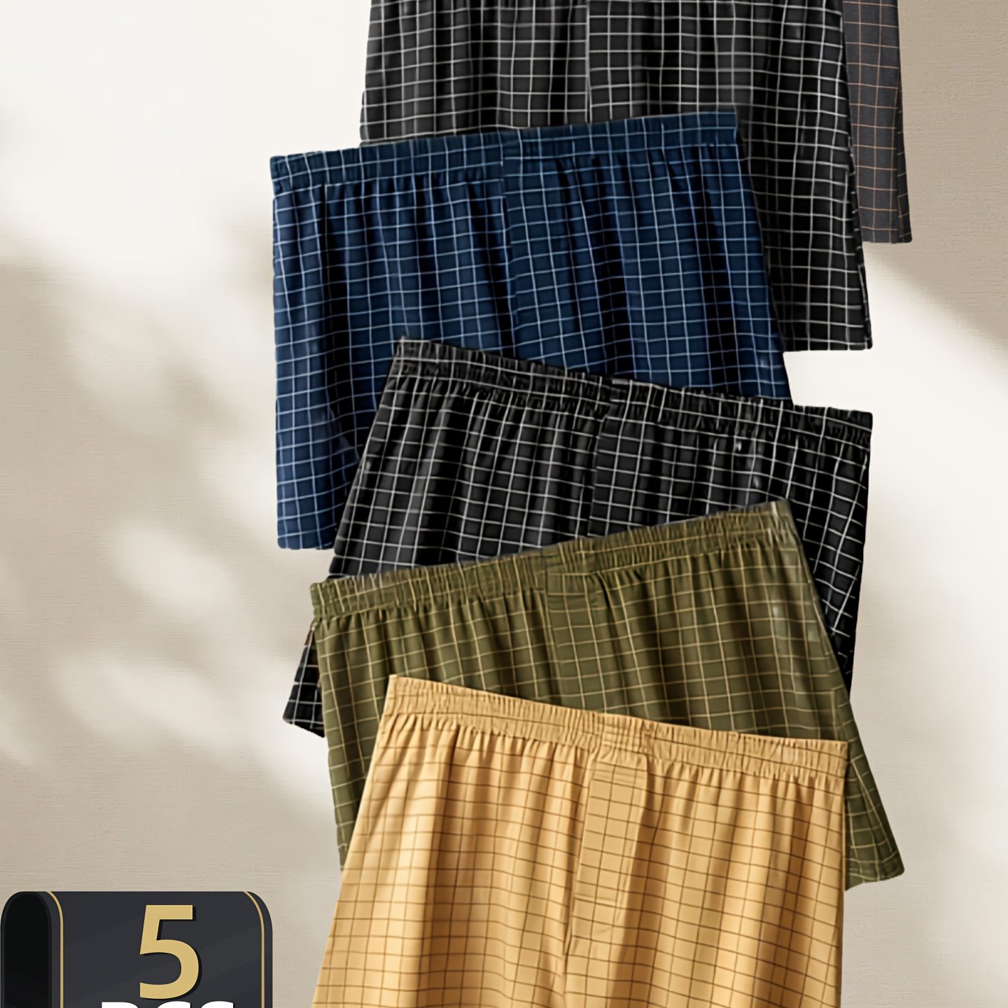 TEMU 남성용 5개입 체크무늬 드로즈 - 통기성 좋은 탄성 허리 밴드, 캐주얼 데일리 & 스포츠웨어, 중간 정도 신축성 원단, 올 시즌 착용 가능, 남성용 편안한 속옷, 드로즈, 데일리 속옷, 클래식 속옷, 편안한 착용감, 남성팬티, 남성팬티여름, 남성팬티, 남자여름팬티, 팬티 남자, 남자 속옷, 남성드로즈, 기능성남성팬티|남자옷