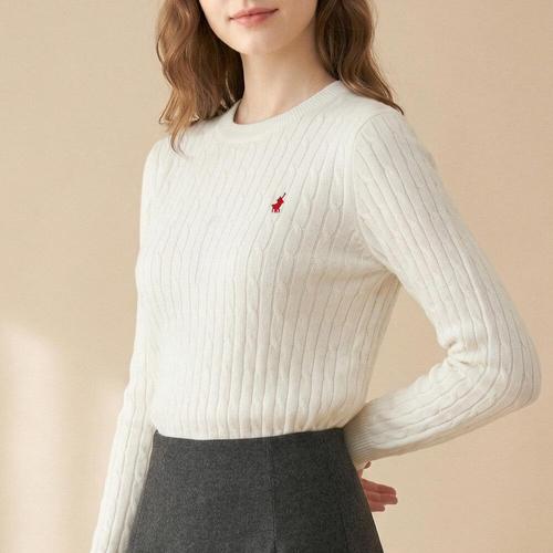 [미미캐츠]KPL 여성 꽈배기 로고 자수 크루넥 풀오버 니트 스웨터 티셔츠 KPL1105