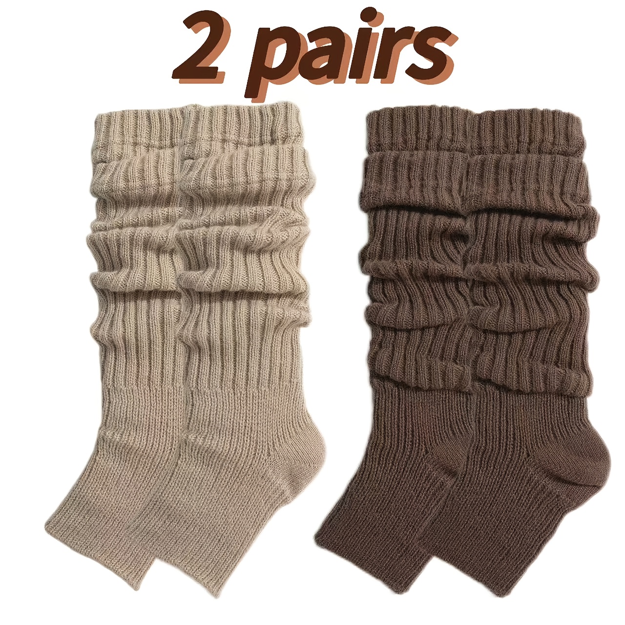 TEMU 2쌍 여성용 양말 커버 - 보온 겨울 레그워머, 베이지에서 브라운 색상, 우아한 풋페달 디자인 부츠/신발용, 아늑한 가을 & 겨울 의류 액세서리|신발|악세사리