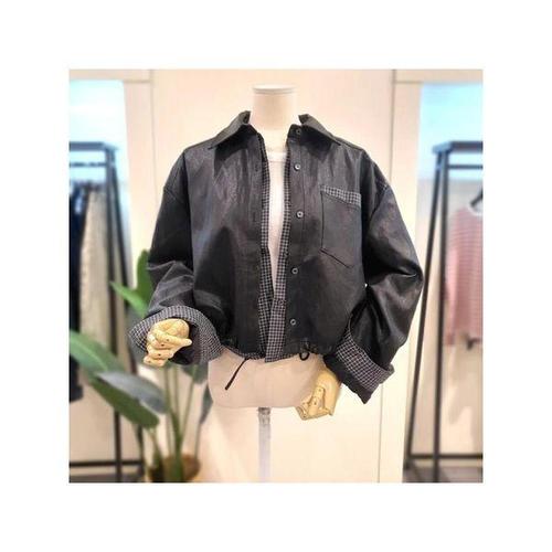 [미스칸트]KOLTQ301BK 체크배색가죽자켓 블랙
