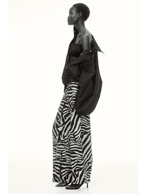 [에이치엔엠] 리넨 블렌드 플레어 팬츠 라이트 베이지/지브라 프린트 1328269002
