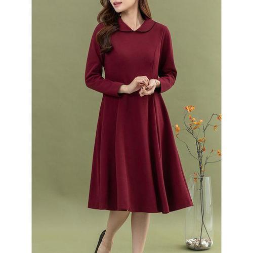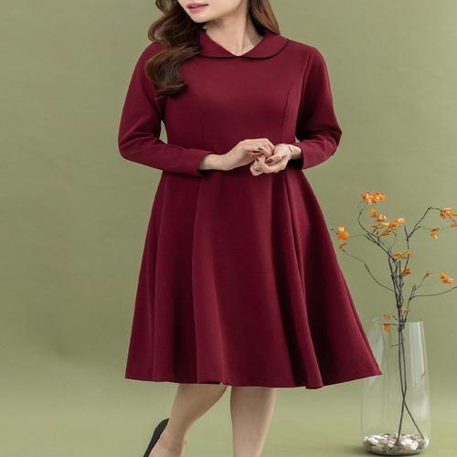 드리다 여자 가을 겨울 카라 플리츠 A라인 빅사이즈 플레어 원피스 40-50대 미시 중년 엄마옷 하객 상견례