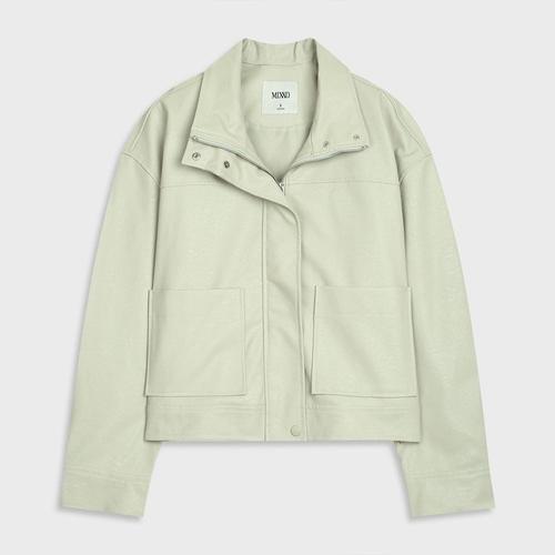 미쏘 여성용 페이크 레더 스탠카라 자켓