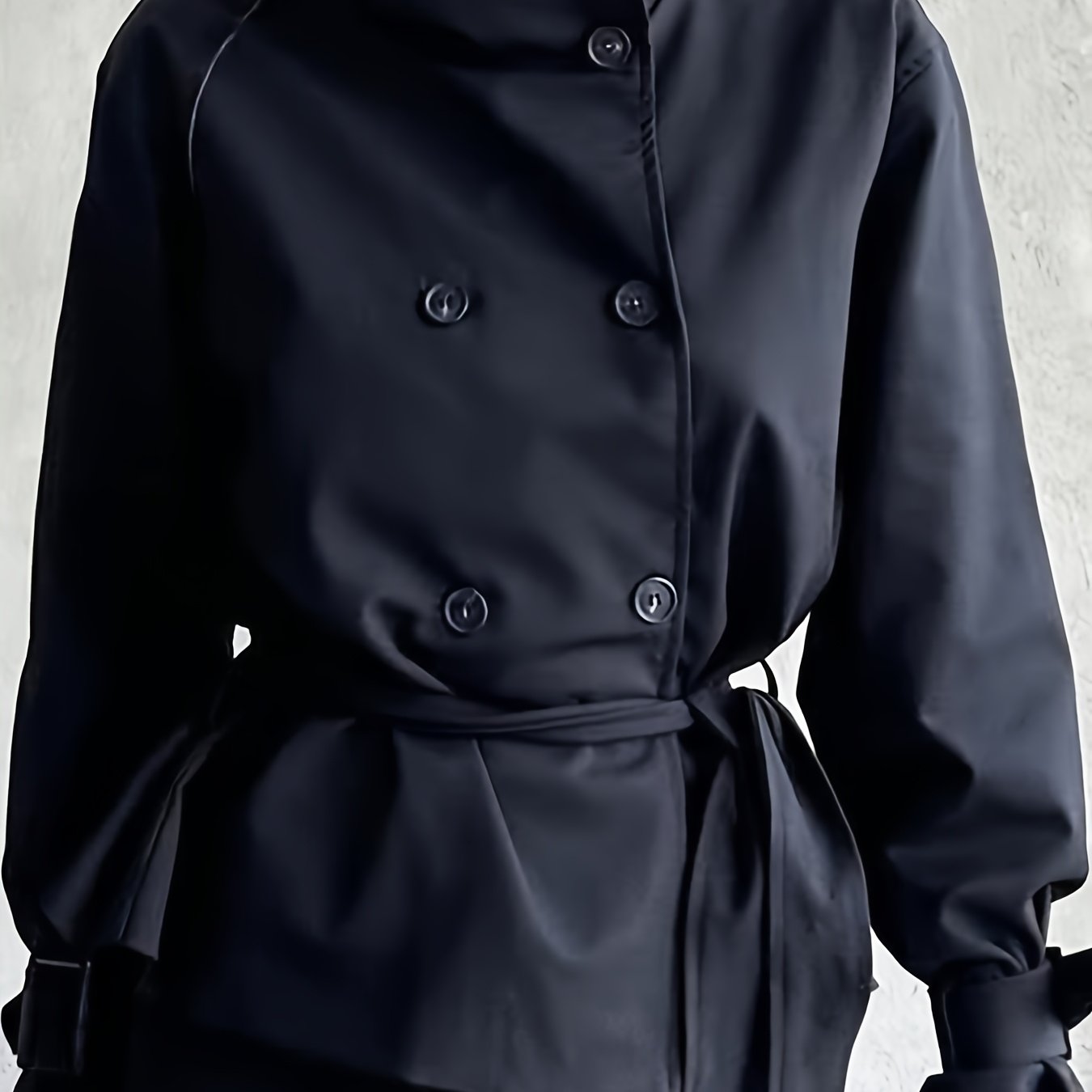 2025년 신상 여성용 브리티시 스타일 트렌치코트 스타일 더블 브레스티드 긴소매 벨트 라펠 재킷 숏코트