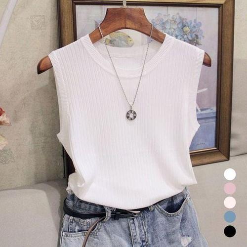 [에이치플러스몰]니트립 크루넥이지 민소매티