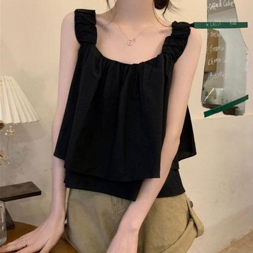 휴양지룩 5컬러 하이츄 프릴밴딩 기분좋은 바스락 루즈핏 크롭 나시 블라우스