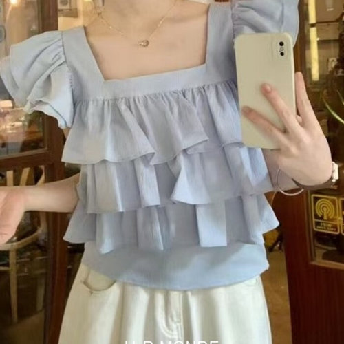 [엄지척]여성 여름 시원한 아방 프릴나시 블라우스 a라인 크롭_19649673_667501