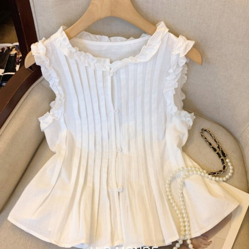 여성용 프릴 칼라 민소매 블라우스 1T528