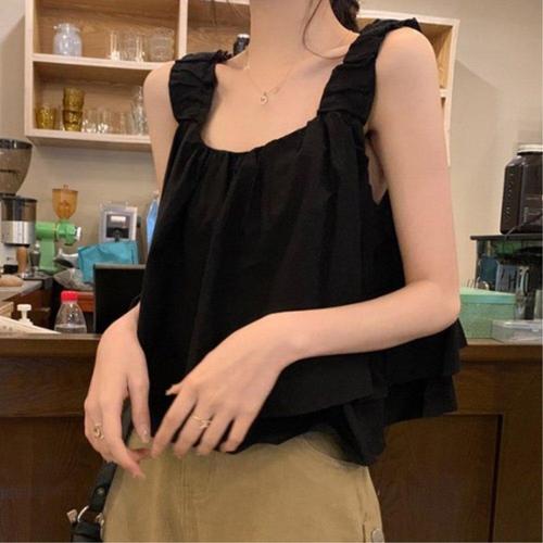 여성 귀여운 탱크 슬리브리스 프릴 블라우스