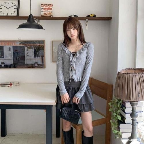 [다잇템][다잇템] 여자 보파시 슬리브리스 프릴 카디건 편한 면혼방 세트_23210180_588872