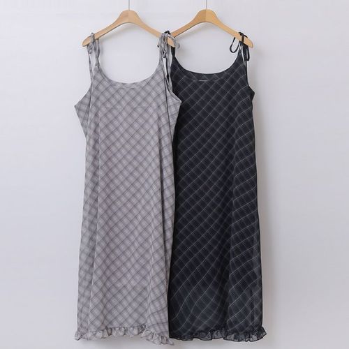[셀러허브_여성트랜드패션]ONM 스퀘어넥 체크 끈나시 원피스 LL-1002545
