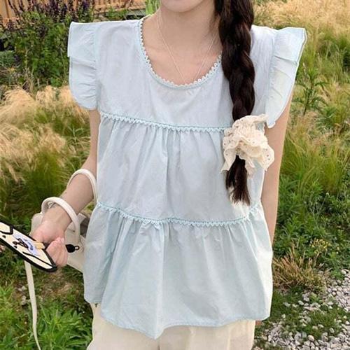 프릴소녀 민트캔디 러블리 퍼프 블라우스 WFKQ953