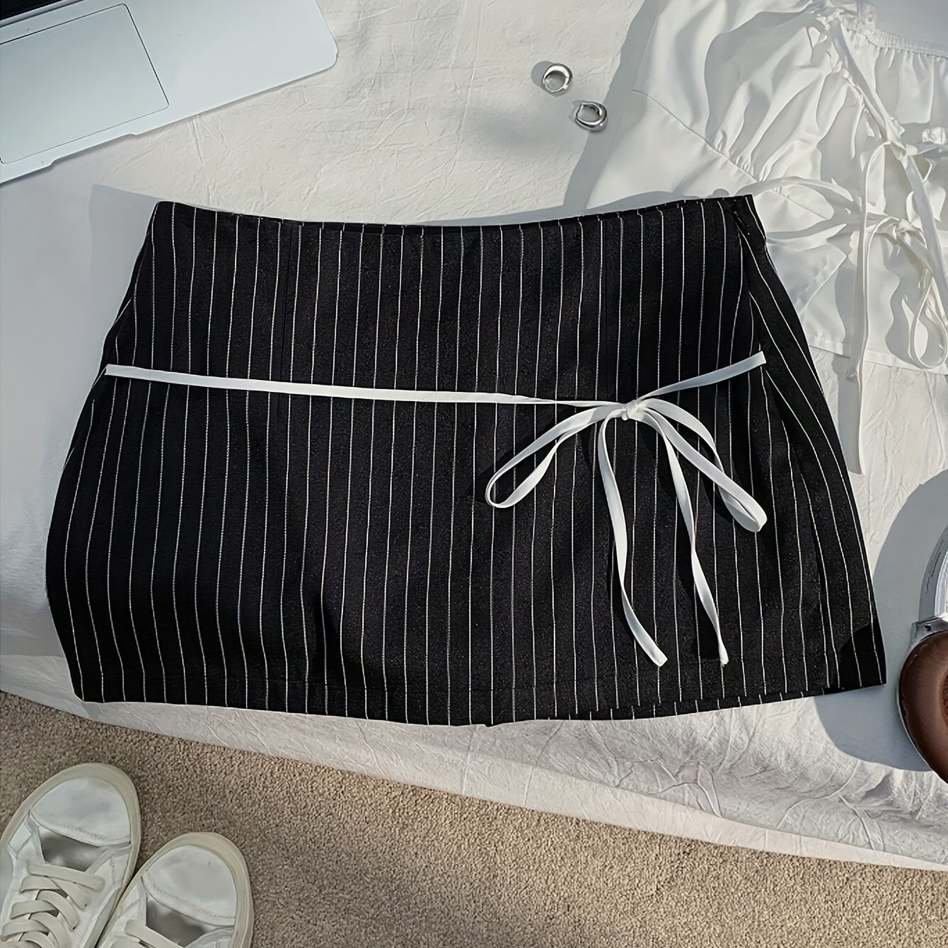 TEMU Y45-우아한 블랙 앤 화이트 미니 스커트 - 스프링/서머, 캐주얼 또는 포멀한 자리에서 완벽한, 캐주얼 스커트 | 우아한 스커트 | 폴리 에스터 스커트