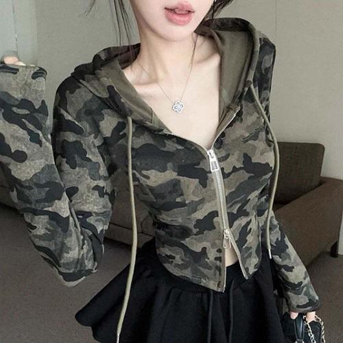 [오너클랜]인기상품 여성 슬림핏 크롭 후드집업 투웨이 밀리터리룩 [WFKORQM_260411]